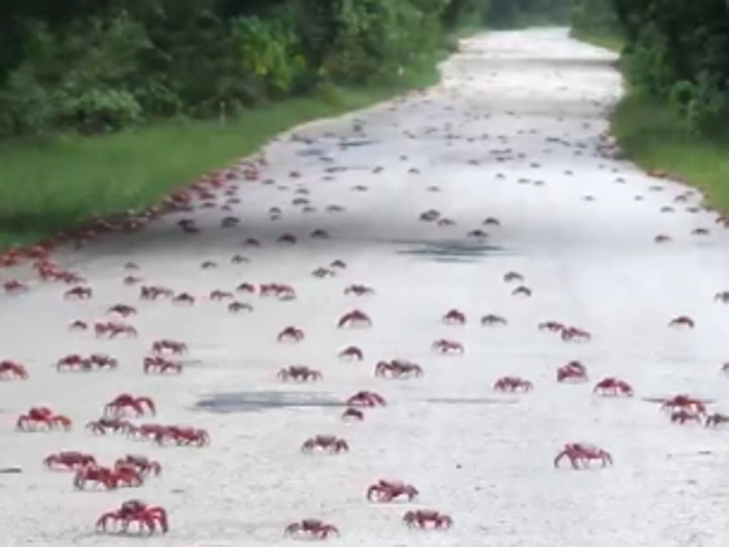 Millions of red crabs descended on roads and bridges in Australia’s Christmas Island as part of their yearly migration towards the ocean, shutting certain routes down.
