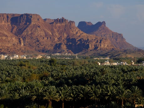 At the heart of the matter is AlUla itself, which provides a welcome splash of green in a land of dust. Amid soaring sandstone cliffs, it is an oasis brimming with palm trees.