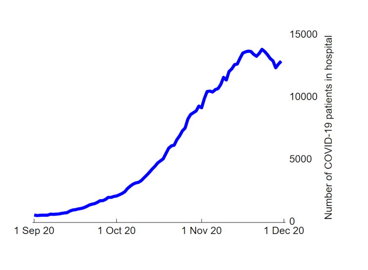 The second English coronavirus lockdown has been devastating for businesses in retail and hospitality. Yet we can see the lockdown has “worked”, bringing case numbers down almost by half from their peak. Rates of new admissions to hospital have also fallen, but pressure on England’s National Health Service (NHS) has not eased substantially.
