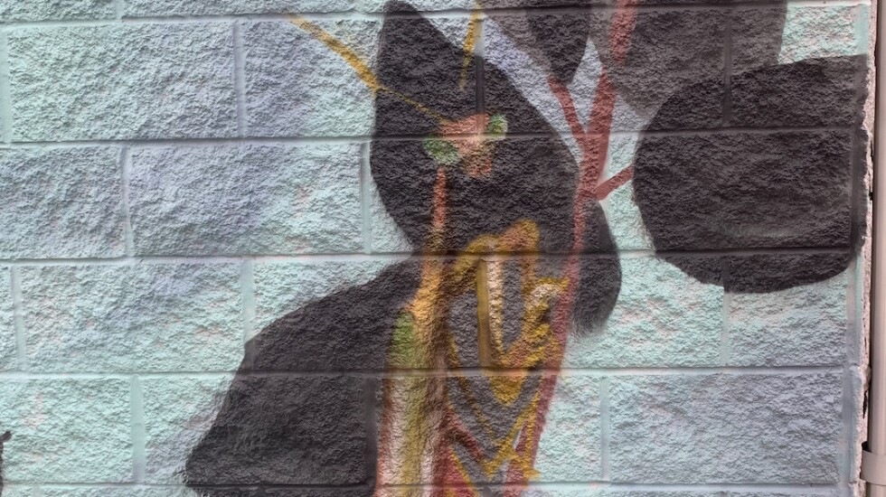The praying mantis is just one of the nods to nature in her mural.