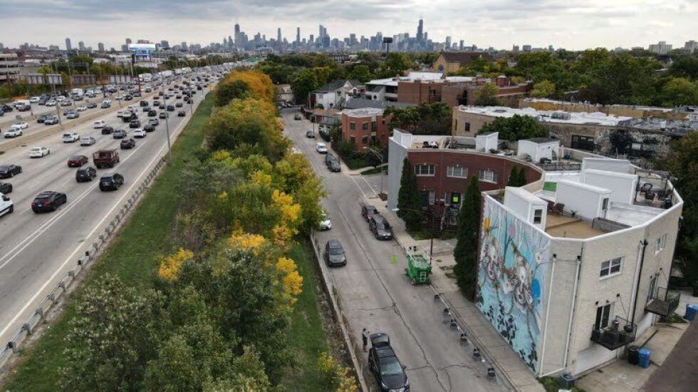 “I just was kind of reaching out through the Internet trying to find a wall to paint,” she says, and someone who lives in the Avondale Avenue building — with a big, barren block wall facing the Kennedy Expressway — saw her online post and “gave me full rein” artistically “to do whatever I wanted to do.”