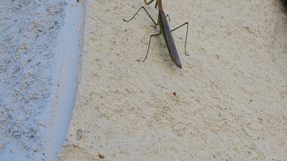 It was a nonnative species from eastern Asia called Tenodera sinensis. She thought: This should be part of the mural, too. And so it is.