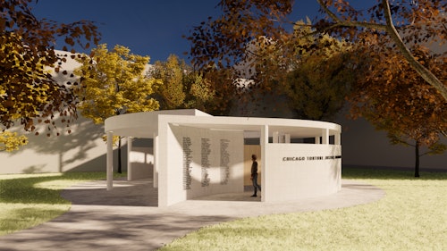 Further inside, there will be a timeline of the torture and of the efforts to hold Burge accountable, including investigations, lawsuits brought by survivors, and charges against Burge. Then there will be a designated community space, where people can gather for talks or activities, or even cookouts.