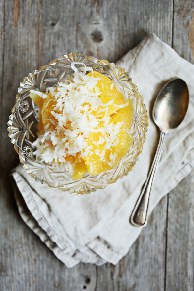 This is true for oysters, another Christmas season treat on Southern tables. Oyster stew on Christmas Eve is a strong tradition in many households, including that of my maternal grandparents. But coconuts are much less fragile than oysters and were clearly being enjoyed without a particular Christmas connection. Oranges do come into season around the holidays, so ambrosia has a logical holidays link, especially back when we didn't have so many ways and temptations to eat out of season as we do now.
