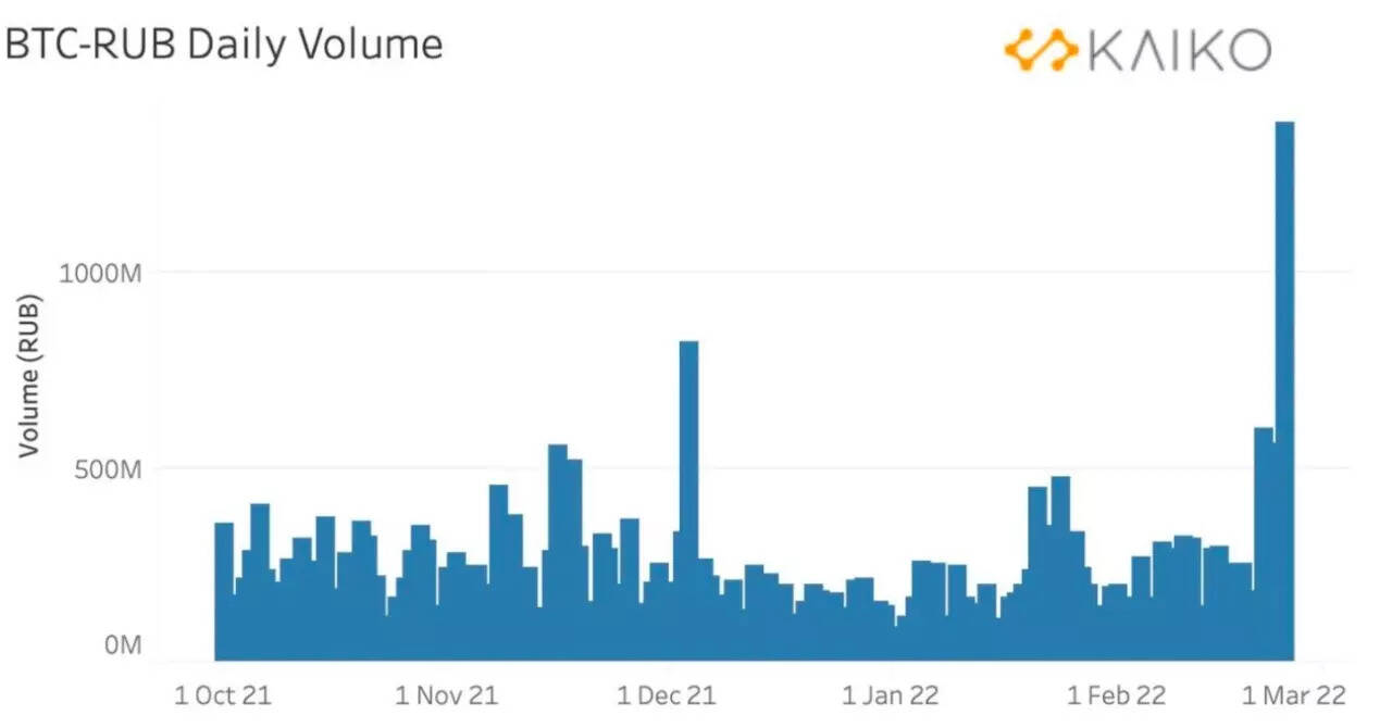"Bitcoin withdrawals from exchanges to private wallets increased on February 28. The withdrawals were higher on global exchanges like Binance which supports several fiat currencies including the Russian ruble, and the withdrawals were lower on regional exchanges which support fewer fiat currencies. Additionally, trading volumes for Bitcoin against the Russian ruble rose to a 9-month high of 1.5 billion RUB worth of Bitcoin traded. Again, these are early signs but it looks like Russians could be buying Bitcoin for three reasons - as a way to hedge against the devaluation of their national currency, to protect against an imminent banking crisis, and a means to send money internationally," Darshan Bathija, CEO and co-founder of Vauld, told Times of India.