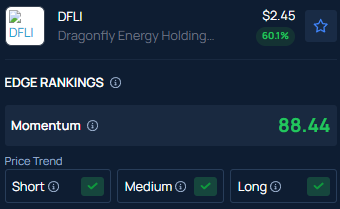 With a strong Momentum in the 88th percentile, Benzinga’s Edge Stock Rankings indicate that DFLI has a positive price trend across all time frames. Know how its momentum lines up with other well-known names.