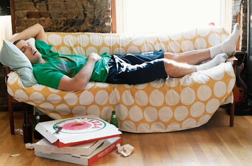 Let’s take a fun detour to explore the discomfort that sometimes accompanies the sleepiness when you down an entire order of Chicken Tikka Masala in one sitting. “The intestines have to further digest the food you’ve eaten, which can cause extra gas,” Broch says. This apparently exacerbates the uncomfortable feeling of fullness we experience. All of that extra work that is being done to digest can speed up for metabolism, which can lead to a feeling of being hot, sweaty and sometimes even dizzy. And that’s exactly why the charming term meat sweats exists. “And, if you overeat frequently, over time, this slowed digestive process means the food you eat will remain in the stomach for a longer period of time and be more likely to turn into fat,” Broch adds. Cool, cool.