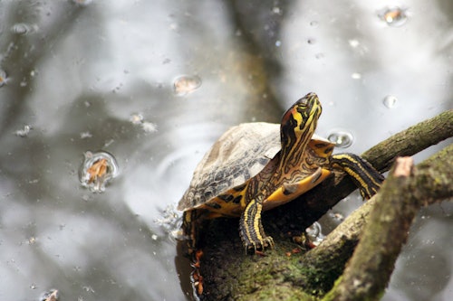 This method of survival combines hibernation and a process called 'cloacal respiration.' While hibernating, turtles can slow down their metabolic processes and reduce the amount of energy and oxygen they need. Then, their bodies take oxygen from water by running it through areas that have a lot of blood vessels. Their butts, in other words. The turtles run water through their butts and absorb the oxygen, keeping them alive during their underwater, winter hibernation.