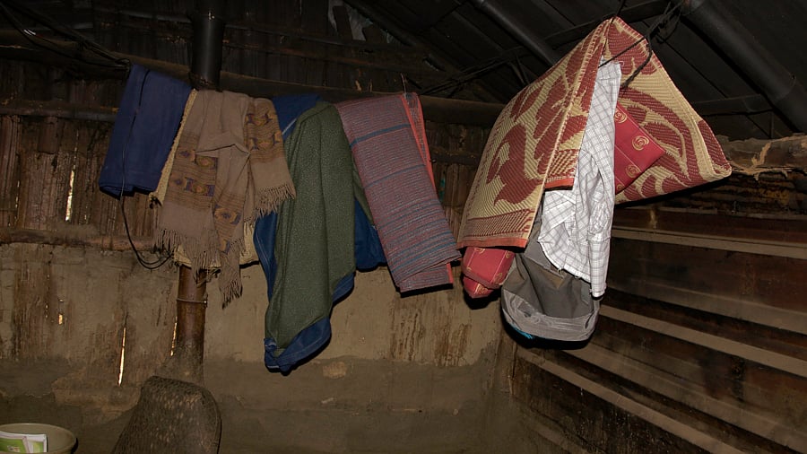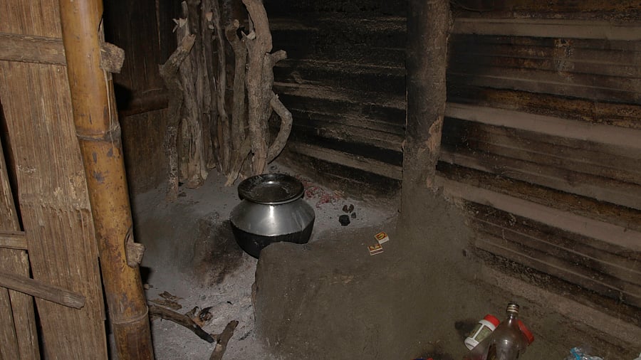 In Binu and her sister-in-law Radha’s settlement, there are four 8x12-foot bamboo structures, each covered with blue tarpaulin sheets. This is what the Adivasis call home.