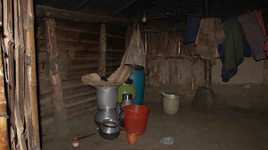 Radha, shows us her home. In one corner of the single-room makeshift structure, there are a few utensils with firewood for cooking and on the other side is a small cot.