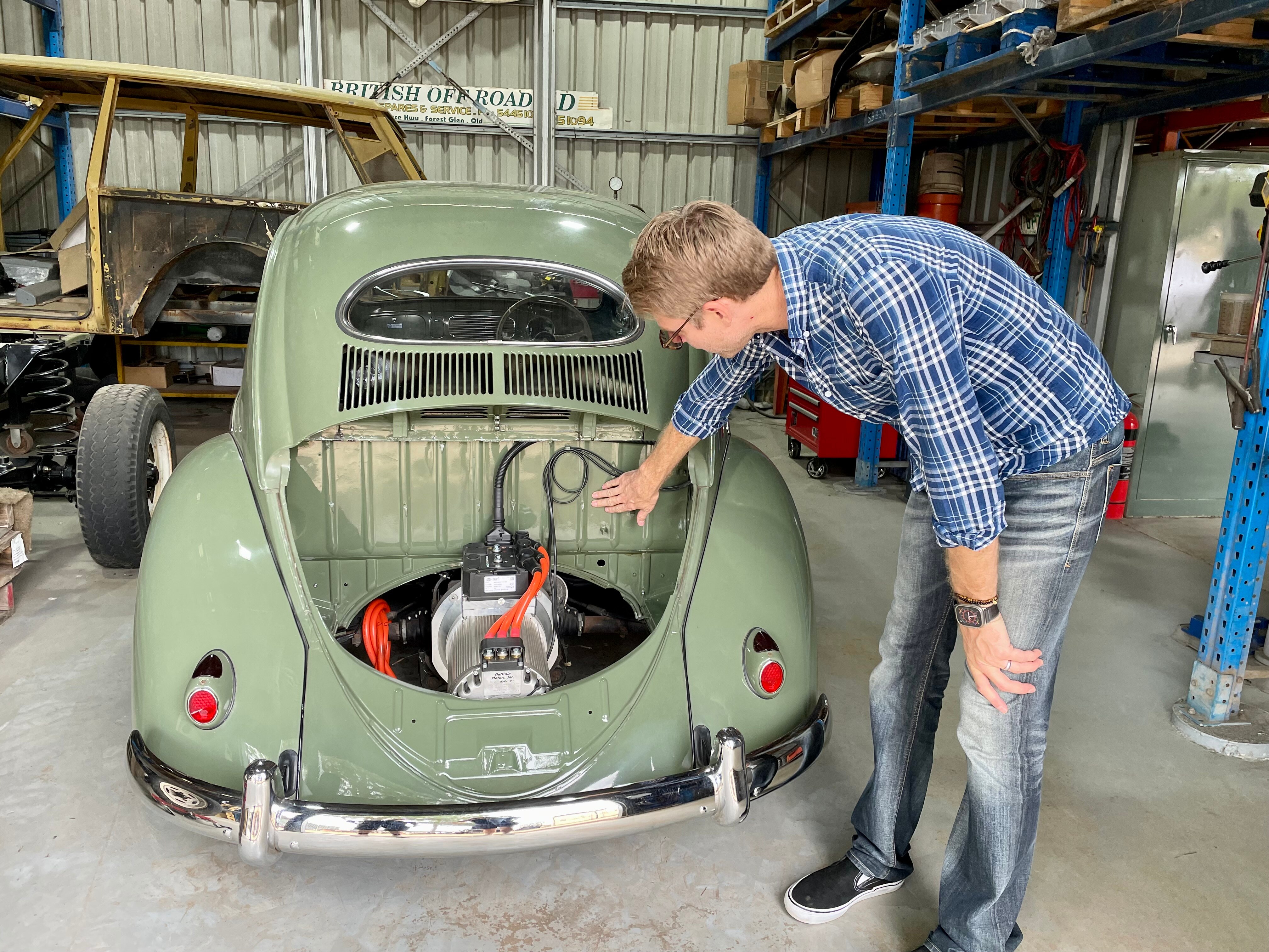 "We removed the petrol motor and we've put in a 50-kilowatt-hour battery with a 130-horsepower electric motor and so now she's ready for the next gen; she actually gets 250 kilometres of range," Mr Wasmer said.