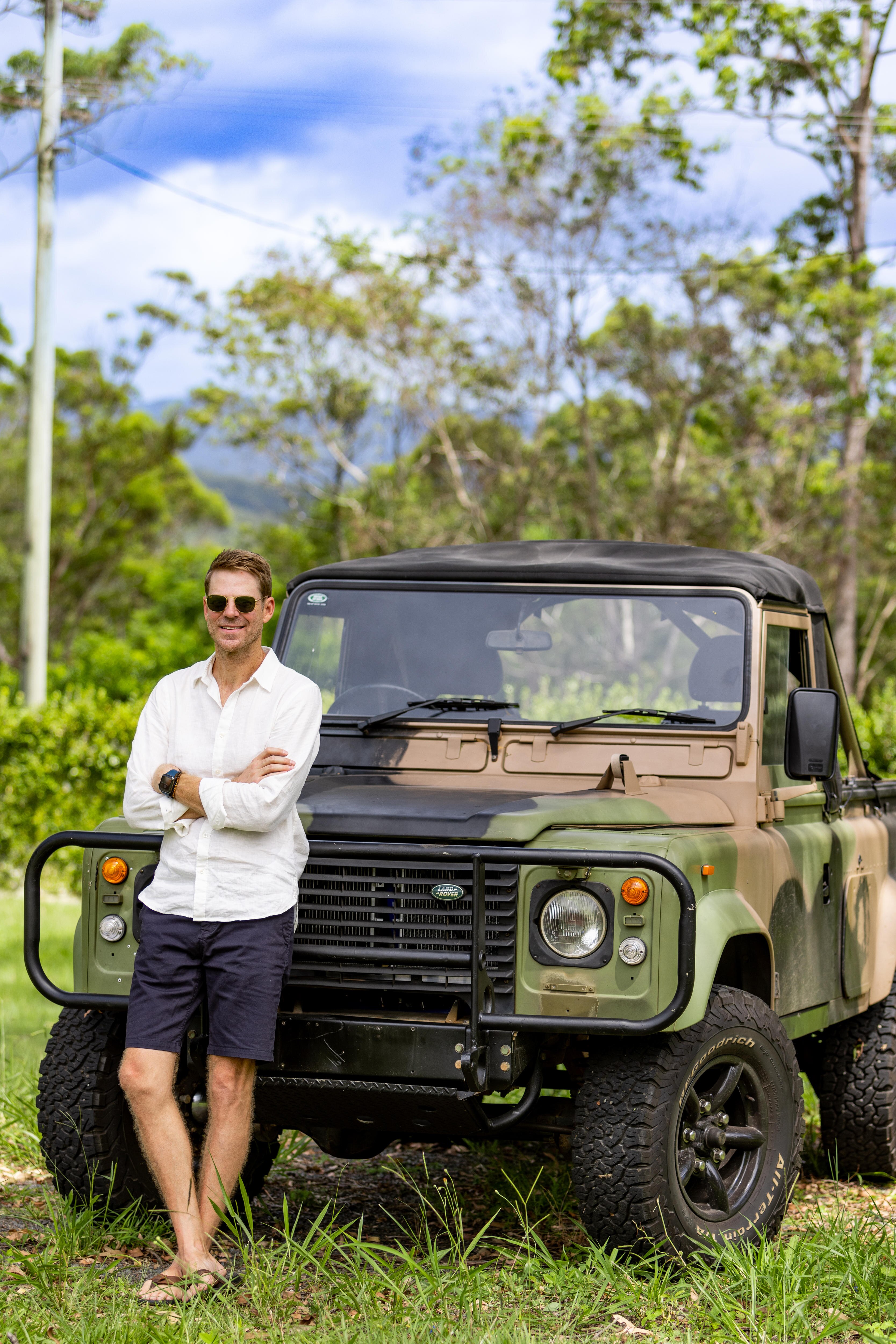 He began by approaching Ross and Mark Calder at British Off Road on the Sunshine Coast to convert "Charlie", a former Australian Defence Force 4WD Land Rover Defender Perentie.