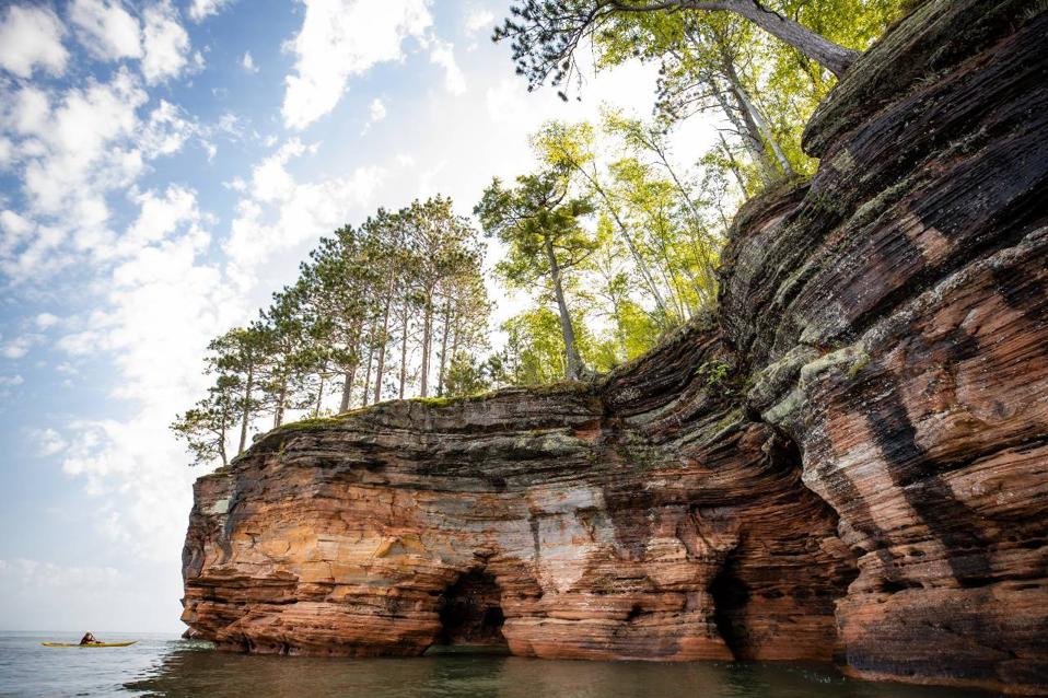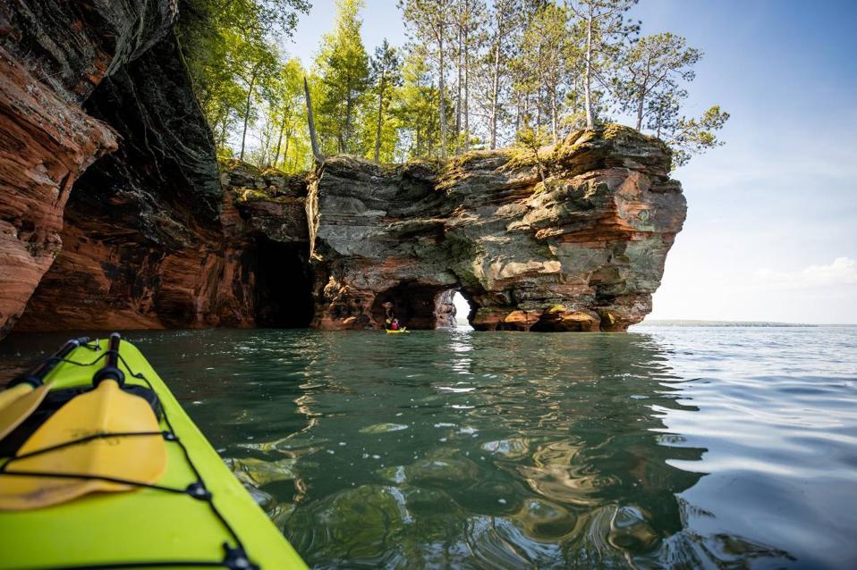 A highlight is kayaking to the sea caves in Apostle Islands National Lakeshore. If it's a windy day or the currents are strong, it can be quite the kayak ride, but well worth the physical exertion to get up close to these amazing caves. They are carved out of the sandstone cliffs along Lake Superior's shore. Book a half-day sea cave paddle with Whitecap Kayaks. The caves were created by centuries of wave action as well as the freezing and thawing of the bottom part of the sandstone cliffs. The result is beautifully sculpted shorelines throughout Apostle Islands National Lakeshore. You can see vaulted chambers, carved arches, honeycombed passageways and more when you kayak up close to these caves. For a true adventure, book an overnight camping/kayak trip. You'll be able to see numerous islands and caves on this trip and you'll get the experience of staying overnight in the actual national park.