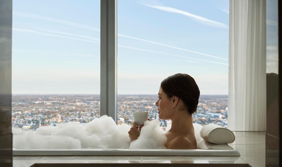 And for a bathing experience like no other: book a Grand Landmark room or suite, and request the Soak Above the Clouds Bath Experience. In addition to a lush floral arrangement by Jeff Leatham’s team, you’ll receive mineral-rich bath salts, fragrant candles, and a Knesko Gold Repair Collagen Face Mask with 24K Colloidal Gold and Hyaluronic Acid to restore you from head to toe. As Samara puts it, “There is no better place to enjoy a snow storm, than with a view that can be compared to a giant snow-globe.”