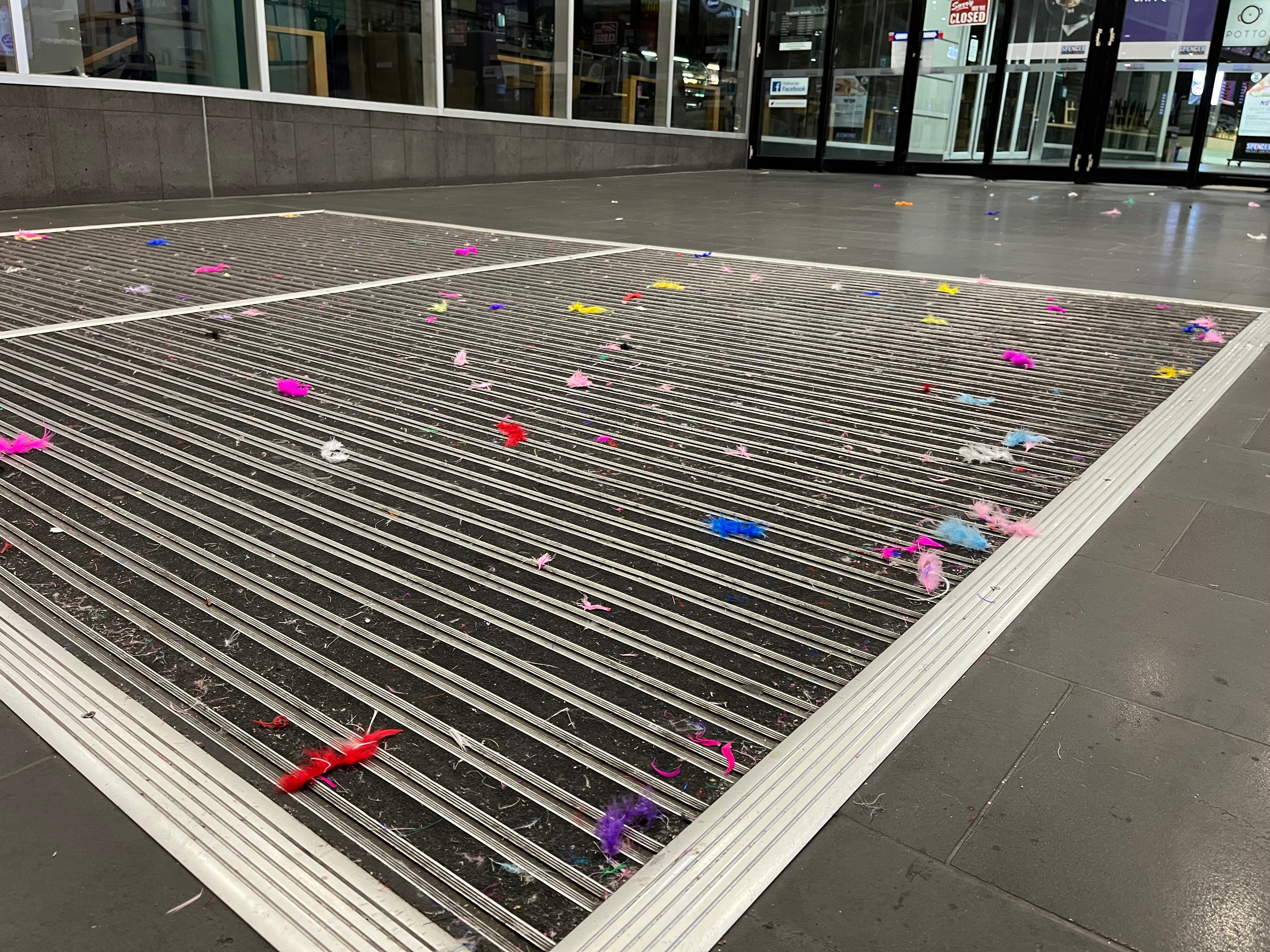 Feathers were left strewn throughout the stadiums and the streets of cities where the UK pop star visited.