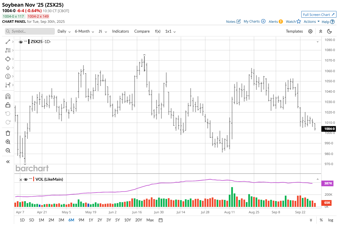 The soybean (ZSX25), soybean meal (ZMZ25) and soybean oil (ZLZ25) futures markets have been hit by last week’s news that around 40 cargoes of Argentine soybeans were registered for export in November and December during last week’s temporary grain export tax suspension by Argentina’s government, which has since ended. Most of those soybean cargoes were booked by China, which did some bargain buying and is a major soybean importer. In years past, China has been a big buyer of U.S. soybeans. Not so this year.