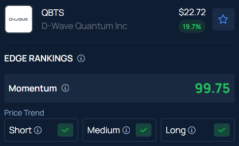 Benzinga’s Edge Stock Rankings indicates QBTS has a Momentum score of 99.75. Track the performance of other players in this segment.