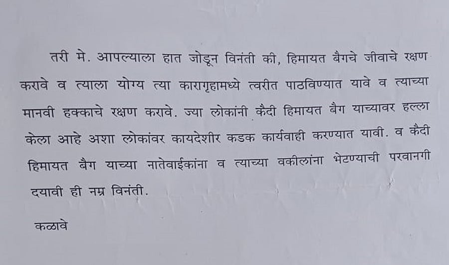 Asked why Himayat was being held in solitary confinement in violation of the law, Pramod Wagh, the superintendent of the Nashik Central Jail, replied, “Which law are you talking about? I cannot answer your queries. Send a written application to my office, then I’ll think about replying to you.”