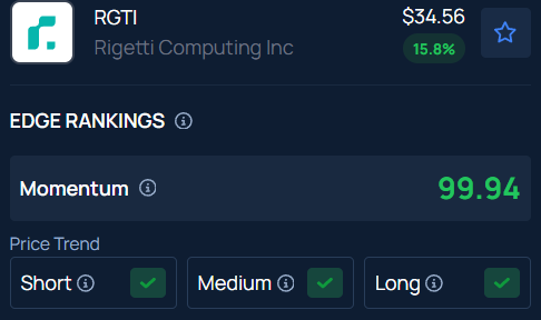 With a strong Momentum in the 99th percentile, Benzinga’s Edge Stock Rankings indicate that RGTI has a positive price trend across all time frames. Know how its momentum lines up with other well-known names.