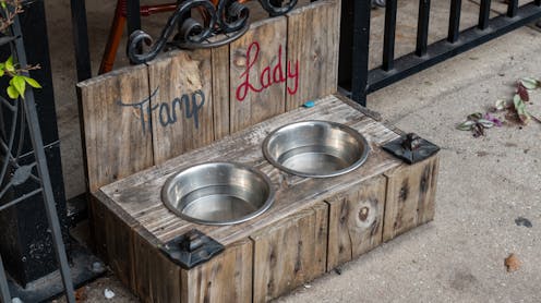 Water is usually offered to dogs in bowls, although dogs eating high-moisture food such as raw meat or tinned food will drink less than dogs eating dry dog food. Keeping food and water bowls clean is essential, and they should be regularly washed (at least daily) using hot water or in a dishwasher. This is important to protect dog and human health as antibiotic-resistant Escherichia coli has been found in dog feeding bowls, suggesting a potential route of transmission.