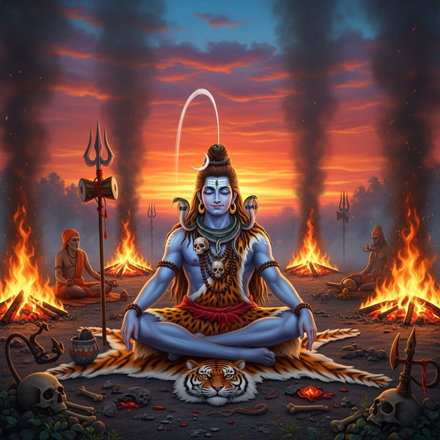 The majority of people are afraid of the unknown, darkness, and death. Shiva, however, sits calmly in the very place that frightens humanity. This demonstrates his bravery and inspires followers to get over their fear of dying. He teaches that death is a spiritual journey rather than an end. Shiva provides bravery and erases fear by staying there. His generosity is found in assisting creatures in facing life's most important reality fearlessly.