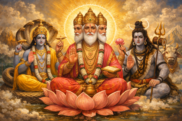 In Hindu belief, the universe is guided by three main forces. Brahma is associated with creation, Vishnu with protection and continuity, and Shiva with transformation and dissolution. Each role carries a different kind of energy.