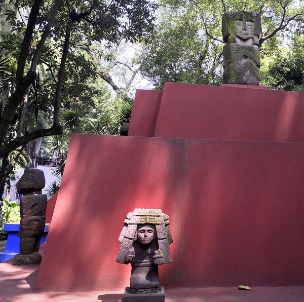 Long, pointed leaves of potted plants and towering trees breathe life and green into the space. Indigenous statues dot the grounds; they were hand-picked by Kahlo and her husband, muralist Diego Rivera, and provide a glimpse into their artistic muses and styling.