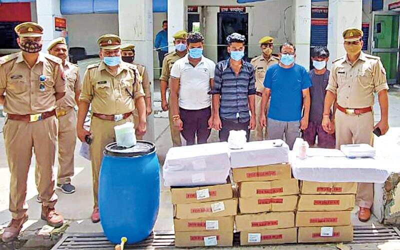 Rameshwar Kumar, the SHO of Beta 2 police station, said the accused would also bring country-made liquor from neighbouring Haryana and create four bottles from one after adulteration. “The liquor was being mixed in the house of one of the accused. They would paste wrappers saying ‘For Sale in UP’ to make the product look original,” he added.