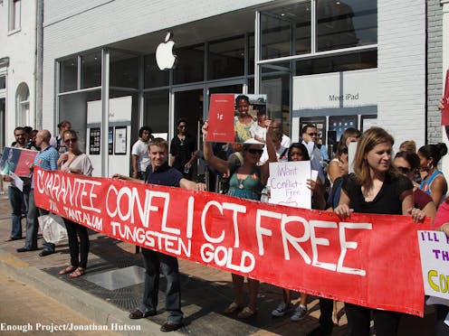 Guidelines and regulations – like the US’s Dodd Frank Act – target companies selling products which might contain “conflict minerals”. They pressure them to monitor their mineral supply chains to ensure that they don’t contribute to conflict or human rights violations.