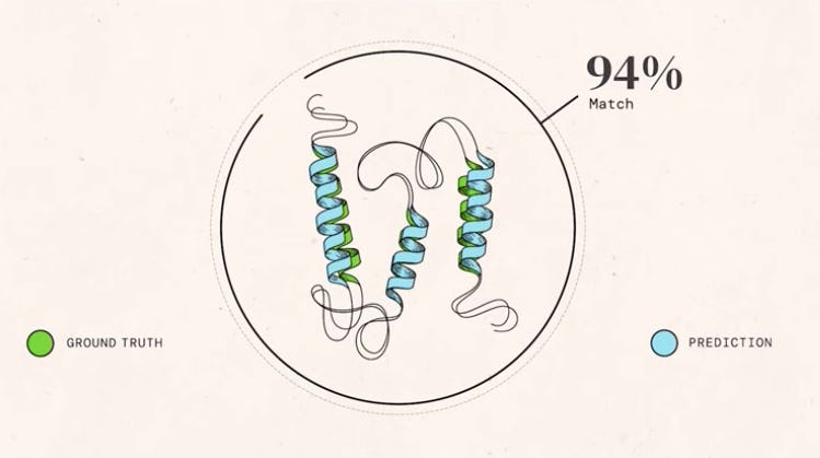 AlphaFold boasts a median accuracy score of 92.4 GDT (the “Global Distance Test” metric which CASP uses, from 0-100) in predicting the outcome of protein folding. When it misses the mark, the error on average works out to be about the width of an atom (!!). Professor Ewan Birney, Deputy Director-General of the European Molecular Biology Laboratory, said in a statement that he “nearly fell off [his] chair” upon seeing the results.