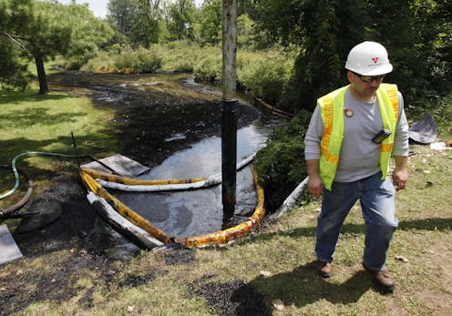 But oil pipelines can leak or rupture, and spill their contents into the environment. In July 2010, for example, an Enbridge pipeline in Marshall, Mich., spilled at least three million litres of dilbit into the Kalamazoo River, of which an estimated 680,000 litres sank.