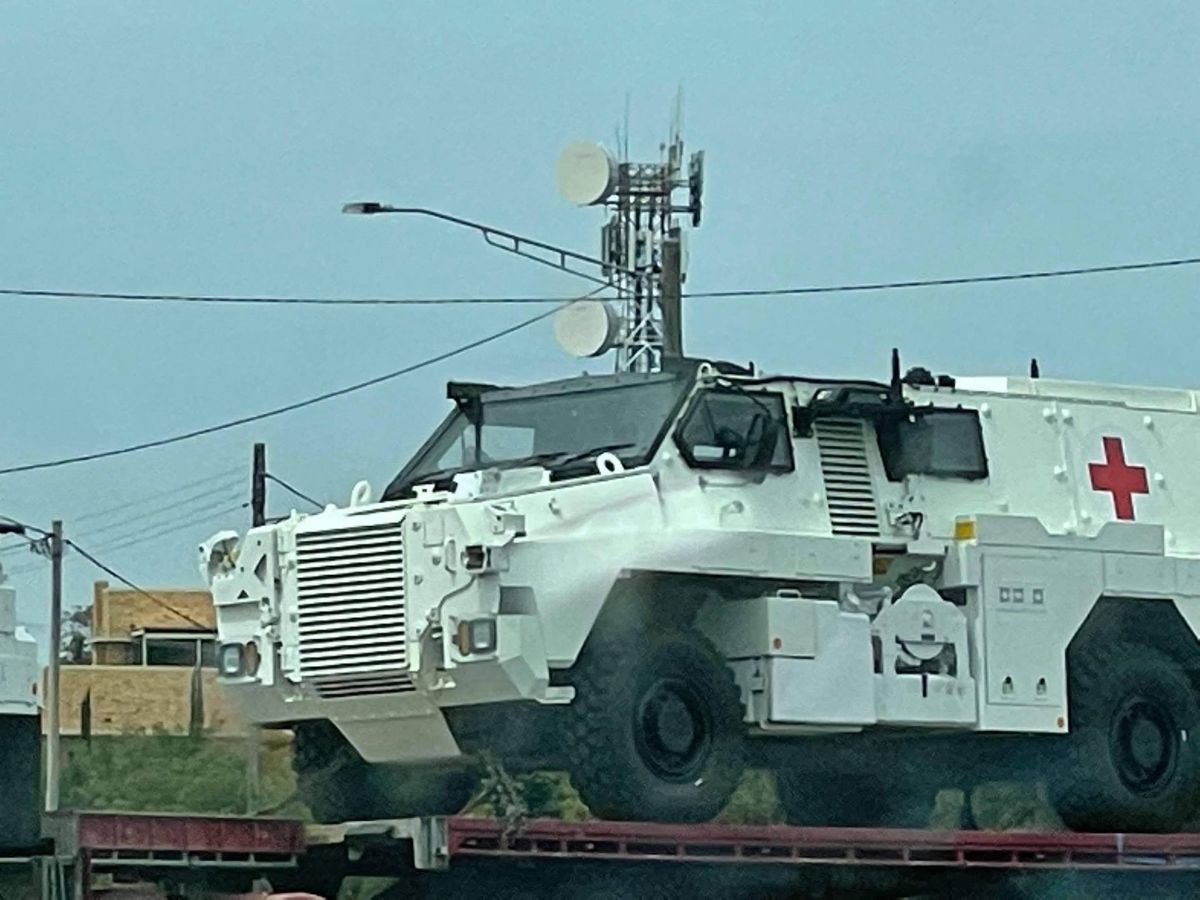 "I have reports coming in that there are UNITED NATIONS armoured cars being truck[ed] into NSW & VIC," one Facebook user wrote alongside a photo of armoured vehicles emblazoned with a red cross.