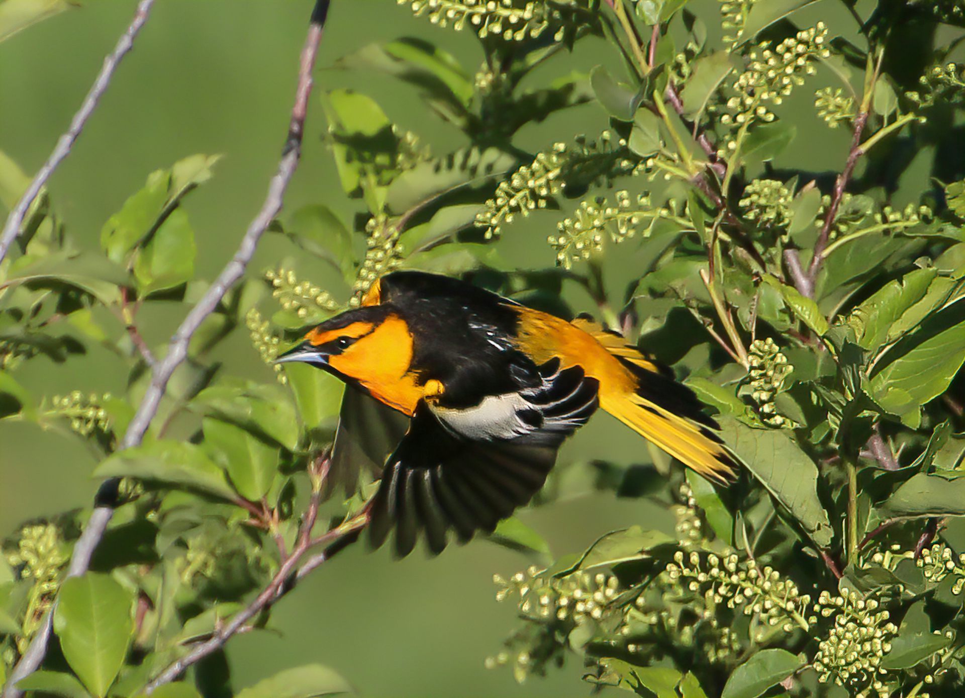 For birds like the Bullock’s oriole, a brilliant orange and black songbird (females are more of a drab yellow) that breeds locally in stands of cottonwoods and poplars, the unremitting heat of this parched land, poor in nourishing insects and fruit, is simply too much to bear. When breeding ends in July, the birds head south on feathers dusty and worn from a year of use. These feathers are in desperate need of replacement and travelling on ragged feathers is a dangerous gamble — luckily, the orioles know just where to go for a tune-up. And we can track them on their journey.