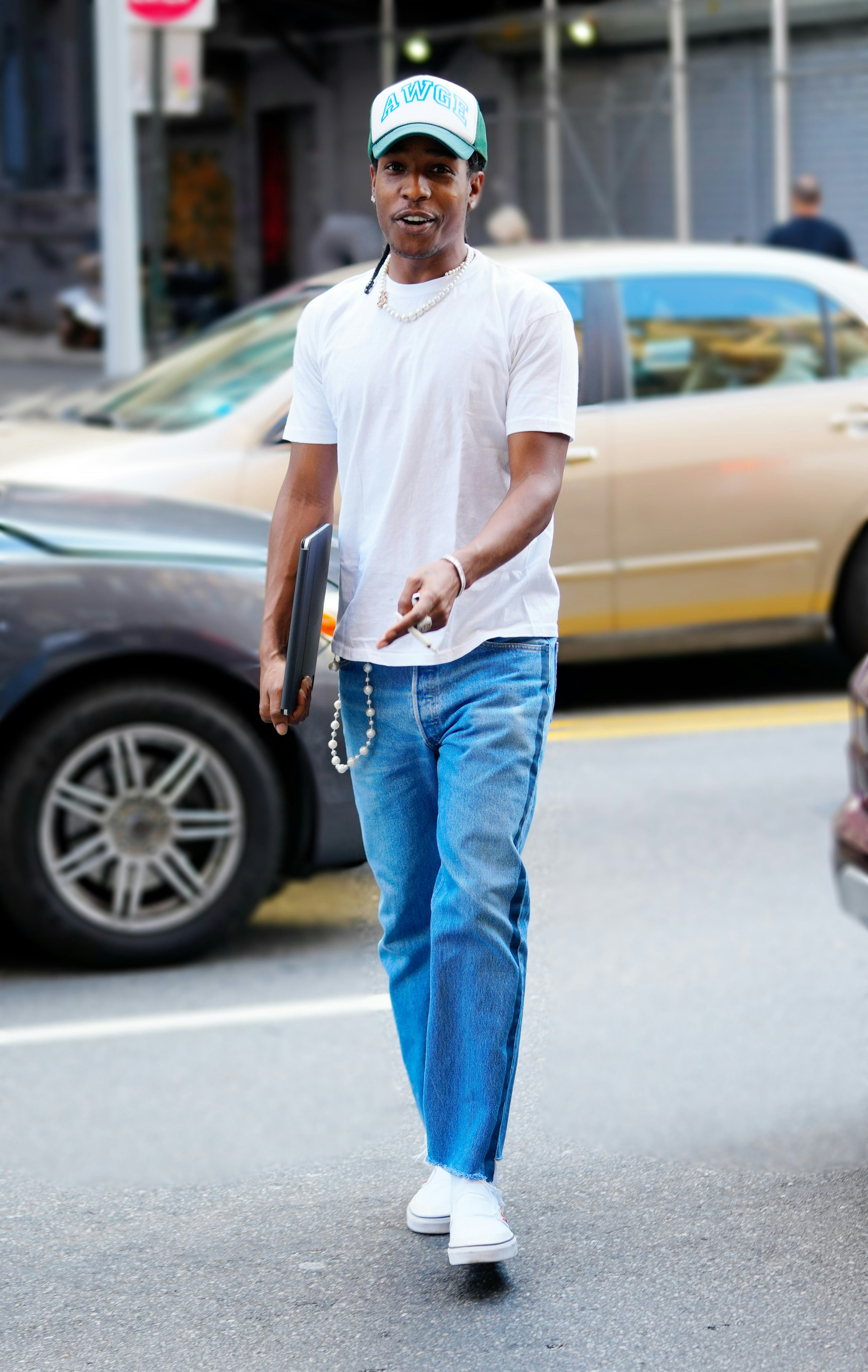 Throw on a mule, take a seat, drink your coffee, and just chill. A$AP Rocky wears the hell out of a suit or a fur, but the look you can most easily chase and should is as simple as some jean shorts and mules.