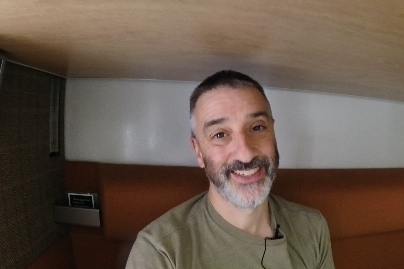 Our spotless set-up comprises a bunk bed, a mirrored door that makes the room seem bigger, a sink with a mirror above it, a bar of posh lime, rosewood and sandalwood soap, and two coat hangers. At one end of the lower bunk is a temperature control dial, a dimmer dial for the main light, a reading light, and a USB port. Opposite is a panel with two plug sockets, two USB ports, a host call button and a button that illuminates a light that runs around the window.