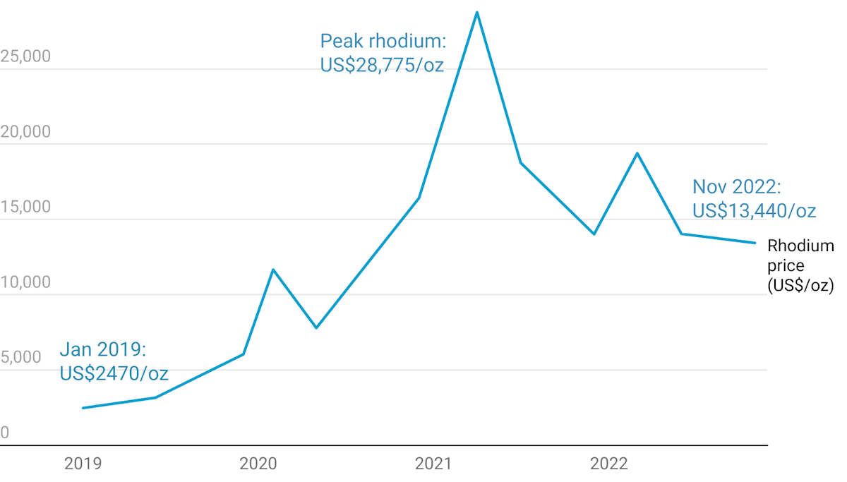 The rhodium price has since dropped back, although it spiked again in March this year. It was $13,400 in November.