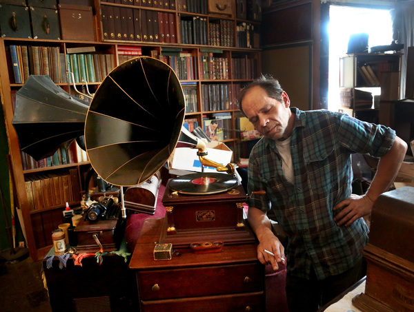 Even on days the shop's doors are locked, Holthus is there, repairing and cataloging until dark. He's known both for happily sharing his encyclopedic musical knowledge and his persnickety spirit. He hates the word "vinyl." He disdains new, cheaply made portable players. He scoffs at reissues.