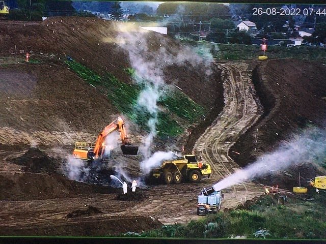 Once workers found the fires, they had to put them out. That involves using heavy machinery to scoop rubbish from the top of the heap, and driving it to the other side of the tip to cool down overnight. Every night, the burning waste needs to be covered up.