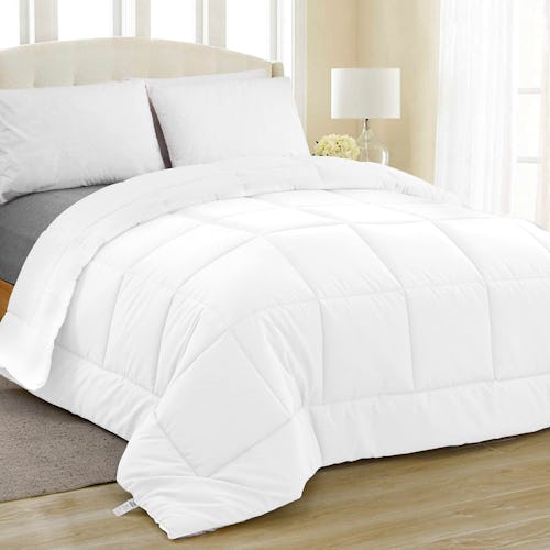 A basic, solid comforter is like a wardrobe staple for your linen closet — it goes with everything, and is super comfortable, too. This microfiber option also doubles as a duvet, and in addition to plain white, there are six reversible choices too. It’s offered in Twin, Queen, and King sizes.