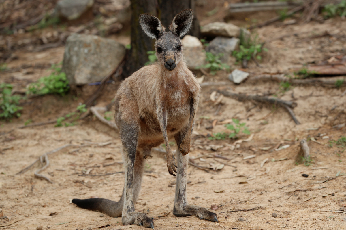 FILE PHOTO: An orphaned kangaroo joey that was rescued during the bushfire season, stands inside the living room of partners Gary Wilson and Julie Willis's home, both of whom are animal carers, in the community of Wytaliba, New South Wales, Australia January 28, 2020. REUTERS/Jorge Silva