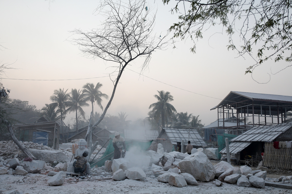 Burmese marble, which ranges from pure white to bluish grey, is prized for its hardness and texture. A 45-tonne slab can sell for $40,000. In Sagyin, specks of the stone are used for everything from brushing teeth to washing clothes.