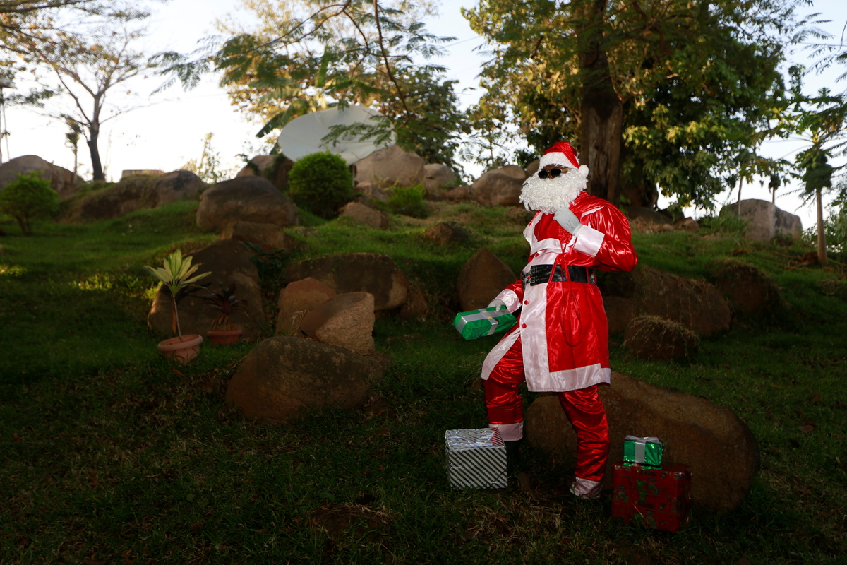 Frederik Tholey of Weihnachstmann2Go, poses for a photograph in his living room, amid the coronavirus disease (COVID-19) outbreak in Berlin, Germany, December 4, 2020. "If it ever happens that children show up on my naughty list, which is not very often the case, it's because they try to pull my beard, don't believe in me, and, this year in particular, if they don't wash their hands," said Tholey. REUTERS/Fabrizio Bensch A gift box with sweets, toys and souvenirs signed "Moscow residence of Father Frost" is pictured in Moscow, Russia, November 28, 2020. REUTERS/Shamil Zhumatov A combination picture shows Frederik Tholey of Weihnachstmann2Go, posing for photographs dressed in his everyday clothing and as Santa Claus, and a Christmas decoration, in his living room, amid the coronavirus disease (COVID-19) outbreak in Berlin, Germany, December 4, 2020. "If it ever happens that children show up on my naughty list, which is not very often the case, it's because they try to pull my beard, don't believe in me, and, this year in particular, if they don't wash their hands." REUTERS/Fabrizio Bensch Oliver Levi-Malouf poses for a photograph dressed as a drag queen Santa at The Imperial Hotel in Sydney, Australia, November 28, 2020. The Imperial Hotel is a bar and pub where Levi-Malouf performs in drag throughout the year and puts on a Santa event for youth around Christmas. "My Christmas message to the world is to be kinder to everyone in a time when we are so isolated," said Levi-Malouf. REUTERS/Loren Elliott SEARCH "GLOBAL SANTA" FOR THIS STORY. SEARCH "WIDER IMAGE" FOR ALL STORIESOliver Levi-Malouf poses for a photograph at The Imperial Hotel in Sydney, Australia, November 28, 2020. The Imperial Hotel is a bar and pub where Levi-Malouf performs in drag throughout the year and puts on a Santa event for youth around Christmas. "My Christmas message to the world is to be kinder to everyone in a time when we are so isolated," said Levi-Malouf. REUTERS/Loren Elliott A combination picture shows Oliver Levi-Malouf posing for photographs in their everyday clothing and dressed as a drag queen Santa and a feathered bird fascinator to be given as a present to a youth near Christmas, at The Imperial Hotel in Sydney, Australia, November 28, 2020. The Imperial Hotel is a bar and pub where Levi-Malouf performs in drag throughout the year and puts on a Santa event for youth around Christmas. "My Christmas message to the world is to be kinder to everyone in a time when we are so isolated," said Levi-Malouf. REUTERS/Loren Elliott Daniel Edidiong, 36, Santa Claus for Independent Television, poses for a photograph at the station in Abuja, Nigeria, December 4, 2020. "I normally use gloves as Father Christmas, but this year due to COVID-19, I am using rubber gloves and each time I hand over gifts to children, I will sanitise my hands." REUTERS/Afolabi Sotunde Daniel Edidiong, 36, Santa Claus for Independent Television, poses for a photograph in his everyday clothing at the station in Abuja, Nigeria, December 4, 2020. "I normally use gloves as Father Christmas, but this year due to COVID-19, I am using rubber gloves and each time I hand over gifts to children, I will sanitise my hands." REUTERS/Afolabi Sotunde A combination picture shows Daniel Edidiong, 36, Santa Claus for Independent Television, in his everyday clothing and dressed up as Santa, and a box with a gift, at the TV station in Abuja, Nigeria December 4, 2020. "I normally use gloves as Father Christmas, but this year due to COVID-19, I am using rubber gloves and each time I hand over gifts to children, I will sanitise my hands." REUTERS/Afolabi Sotunde Santa Claus Limachem Cherem, 64, who runs a school for Santas in Rio de Janeiro, poses for a photograph at a studio where he does online interactions with children and records videos, amid the coronavirus disease (COVID-19) outbreak, in Rio de Janeiro, Brazil, November 25, 2020. Cherem encourages people reach out to each other. "Get on the phone, send messages, it doesn't cost much with the internet," he said. "Since we can't hug in person, send a message of peace to a friend. He needs it, while he is at home." REUTERS/Ricardo Moraes Santa Claus Limachem Cherem, 64, who runs a school for Santas in Rio de Janeiro, poses for photograph in his everyday clothing at a studio where he does online interactions with children and records videos, amid the coronavirus disease (COVID-19) outbreak, in Rio de Janeiro, Brazil, November 25, 2020. Cherem encourages people reach out to each other. "Get on the phone, send messages, it doesn't cost much with the internet," he said. "Since we can't hug in person, send a message of peace to a friend. He needs it, while he is at home." REUTERS/Ricardo Moraes Kamal Krishna Bairagi, 41, poses for photograph dressed as Santa Claus at his home in Kolkata, India, December 4, 2020. "I wish to make the world war-free, pollution-free and epidemic-free for our coming generations. No one should cheat each other, God is watching everything from above. I wish and pray to God to save the world from COVID-19 and my sincere wish to say bye-bye to the disease by the end of 2020," said Bairagi. "Politicians are on my naughty list and actors, like me, who entertain people no matter what the situation is, are on my nice list." REUTERS/Rupak De Chowdhuri A combination picture shows Santa Claus Limachem Cherem, 64, who runs a school for Santas in Rio de Janeiro, posing for photographs in his everyday clothing and dressed as Santa, and holding a letter with Christmas wishes, at a studio where he does online interactions with children and records videos, amid the coronavirus disease (COVID-19) pandemic, in Rio de Janeiro, Brazil, November 25, 2020. Cherem encourages people reach out to each other. "Get on the phone, send messages, it doesn't cost much with the internet," he said. "Since we can't hug in person, send a message of peace to a friend. He needs it, while he is at home." REUTERS/Ricardo Moraes 