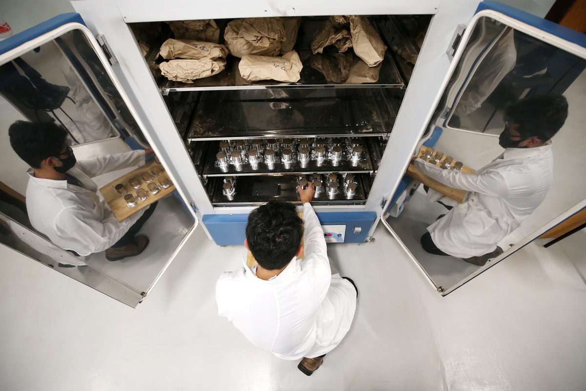 The samples were taken back to the lab, where the team dried and weighed them, before incinerating them in a dry combustion chamber that allows them to measure how much carbon is contained.