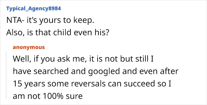 Some commenters suggested giving some of the inheritance to the child, if it’s proven to be his