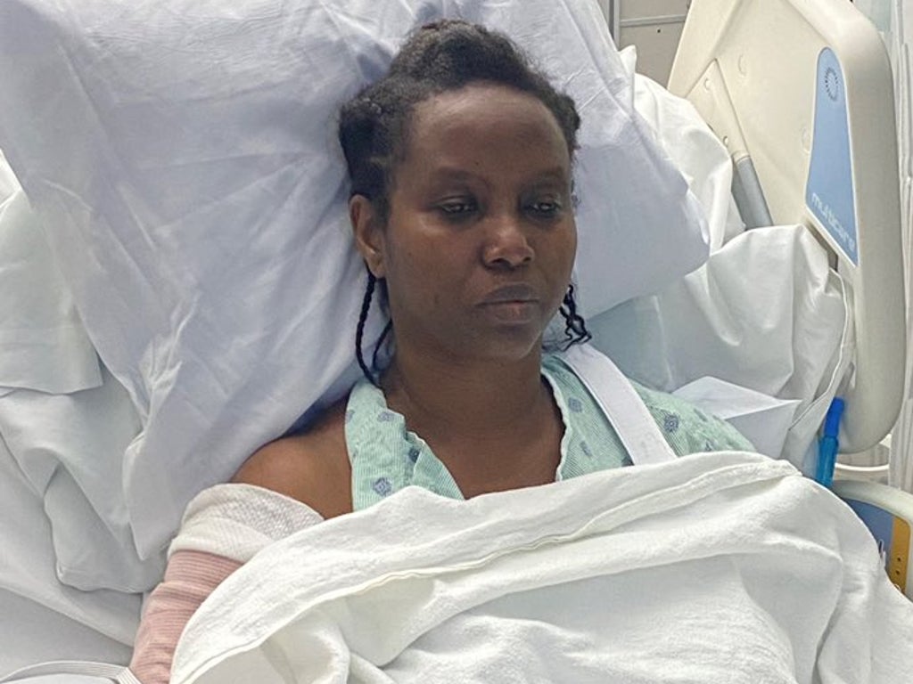 The 47-year-old’s entire right arm was covered in bandages in the images.