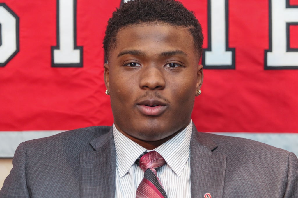 Kalabrya Gondrezick-Haskins, 24, is accused of punching Mr Haskins in the mouth during a row. He was reportedly left with a split upper lip, a missing tooth and other facial injuries, according to ESPN.