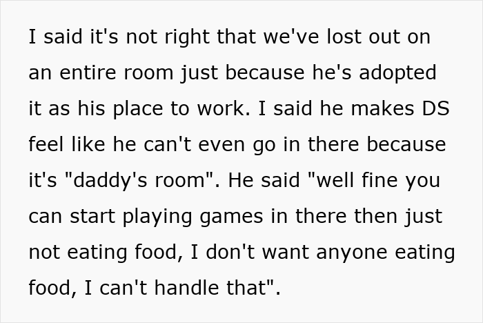 Her husband works from home and has turned their dining room table into his office which is off-limits to everyone