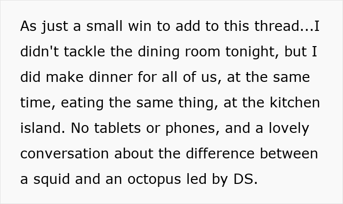 She’s tried to force the issue, attempting to have family meals in the kitchen, but the experience is a soul-crushing failure. Her six-year-old immediately moans for his tablet, a habit she’s “ashamed” of but has come to rely on, and her husband just scrolls on his phone. She’s left feeling like she’s fighting a “losing battle,” a solo warrior for family connection in a sea of digital distraction and picky eating.