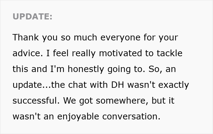 The wife posted an update, detailing the conversation she had with her husband that didn’t go exactly as planned