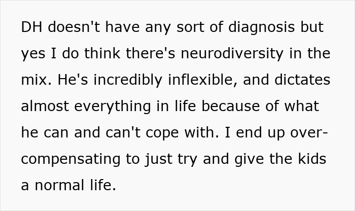 The wife is starting to think there is an element of neurodivergence at play, making the husband unable to cope with any sort of change